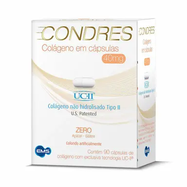 Em até 1x de R$59,95 sem jurosEm até 12x de R$5,67 com juros À vistaR$53,96no Pix Condres Colágeno Não Hidrolisado Tipo II – 90 cápsulas